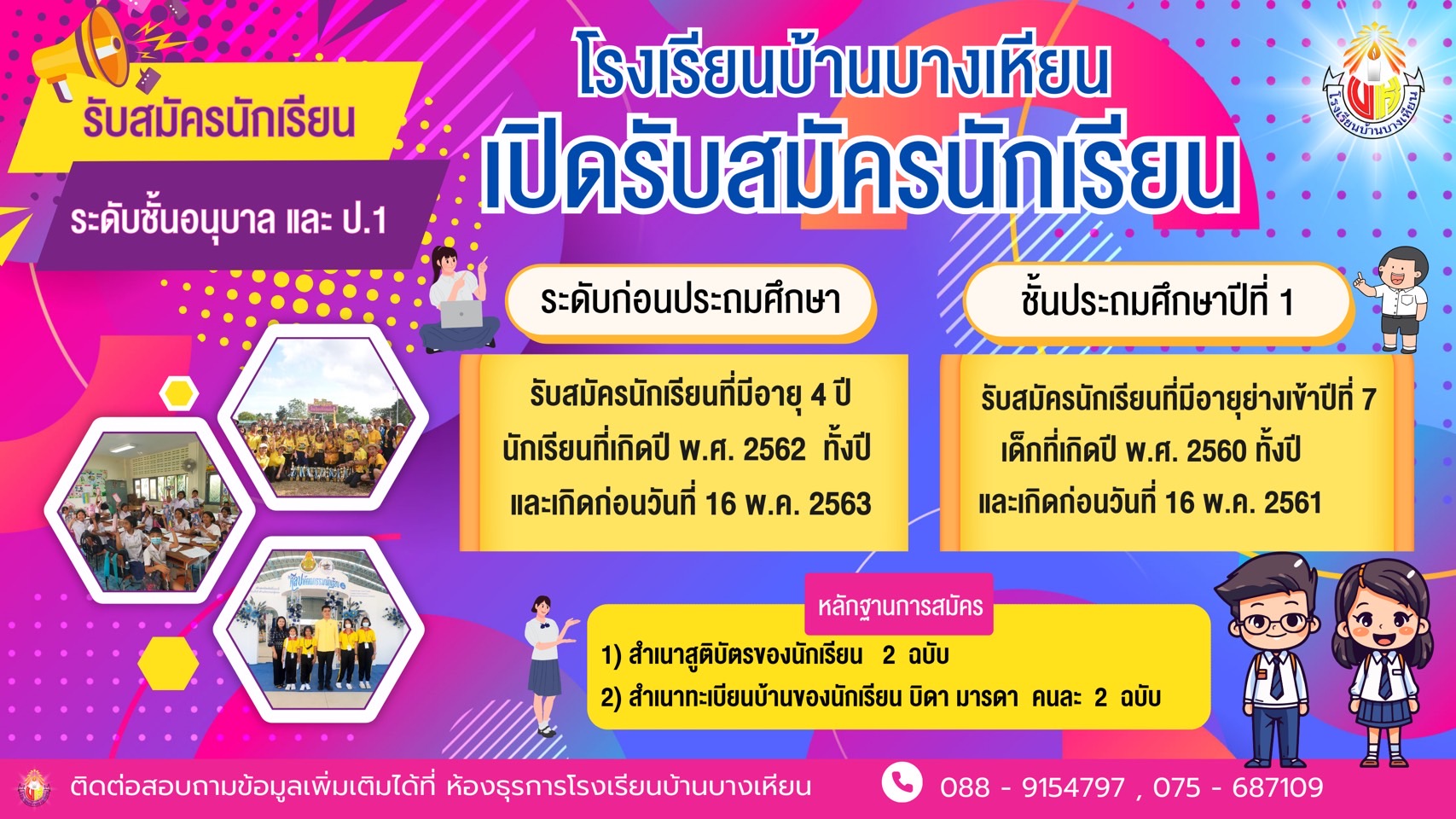ทั้งนี้ ผู้ปกครองและนักเรียนที่สนใจ สามารถมาสมัครได้แล้วตั้งแต่วันนี้เป็นต้นไป ที่ห้องธุรการโรงเรียนบ้านบางเหียน